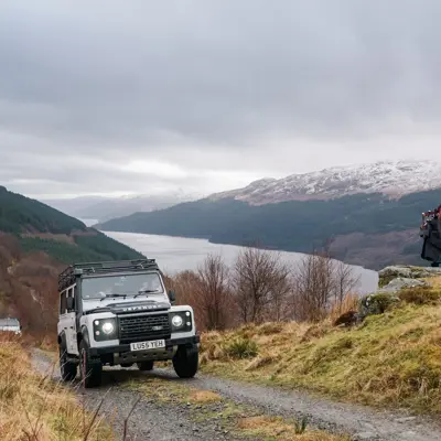 Take your team off‑road in classic Land Rover Defenders and explore the dramatic landscapes around Loch Lomond with kilted adventure guides.