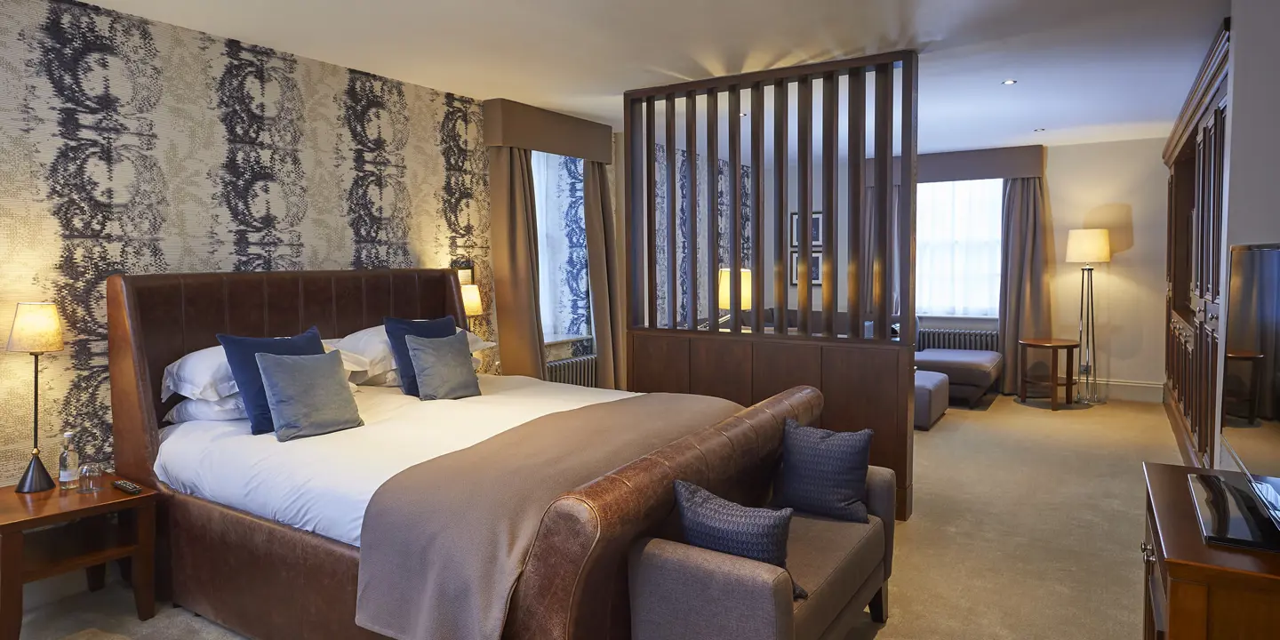 Our spacious and luxurious Suites are contemporary in style and feature a super king-sized bed, large flatscreen TV, seating area, free standing roll top bath and walk in monsoon shower (some with double shower). Nespresso machine, bathrobes, slippers and L'Occitane toiletries are standard in our suites.