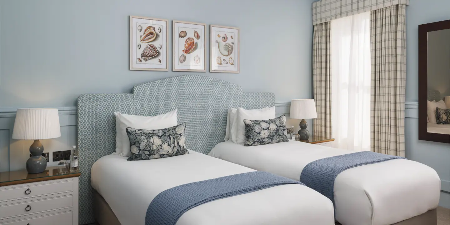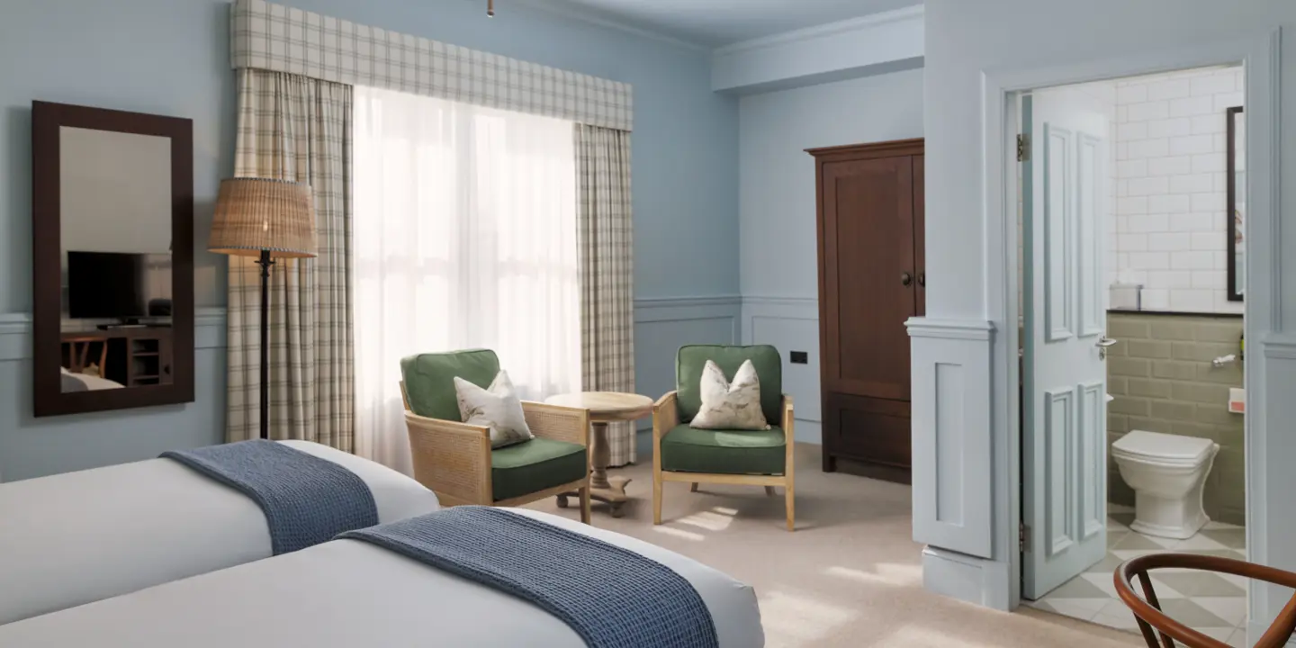 Our classic rooms are located in the charming original house, each individually designed with a sumptuous super king or twin bed (please note some rooms can not be twinned), a flat screen TV, free wifi, Dyson fans, a writing desk and different types of seating including armchairs. They also boast a luxurious walk-in monsoon shower. They are all ideal for business or leisure.