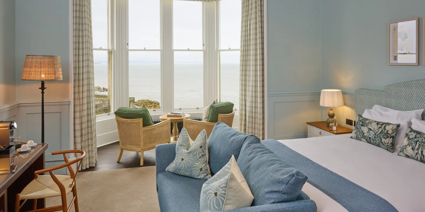 Our junior suites are spacious, light and individually designed, with a zip & link bed and comfortable sitting area, armchairs or sofas and writing desk. With all the extras like complimentary Wi-Fi, fluffy bathrobes, flat screen TV, Dyson fans and room service, you won't want to leave. Enjoy gorgeous views overlooking the West Sands Beach from the armchairs in the bay window.