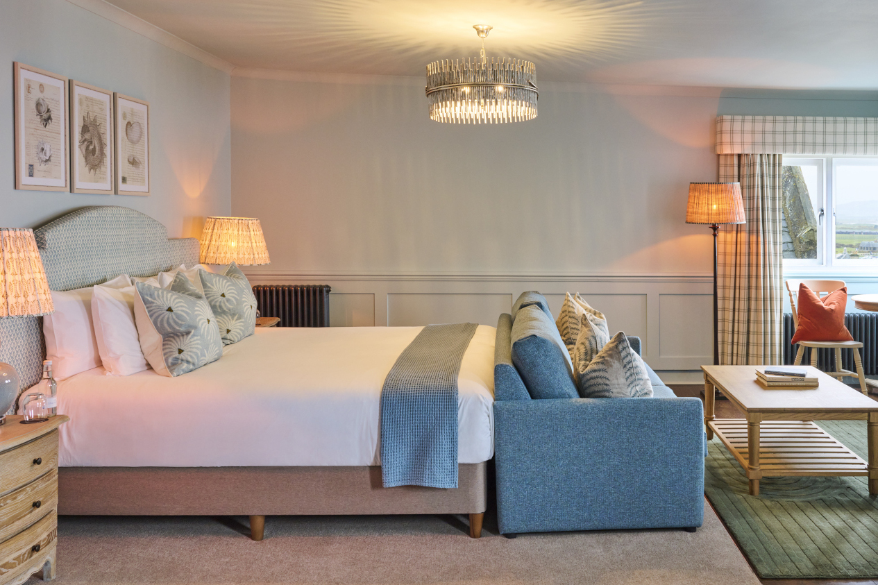 Our spacious open-plan suites boast the finest features. Take relaxation to the next level with our luxurious queen bed, cosy lounging area, and an en-suite bathroom with a roll- top bath for a comfortable soak or perhaps relax in our walk-in monsoon shower, you will not want to miss either. Two of our suites feature views over charming St Andrews Bay, while our Eden Mill suite enjoys a wonderfully spacious lounge.