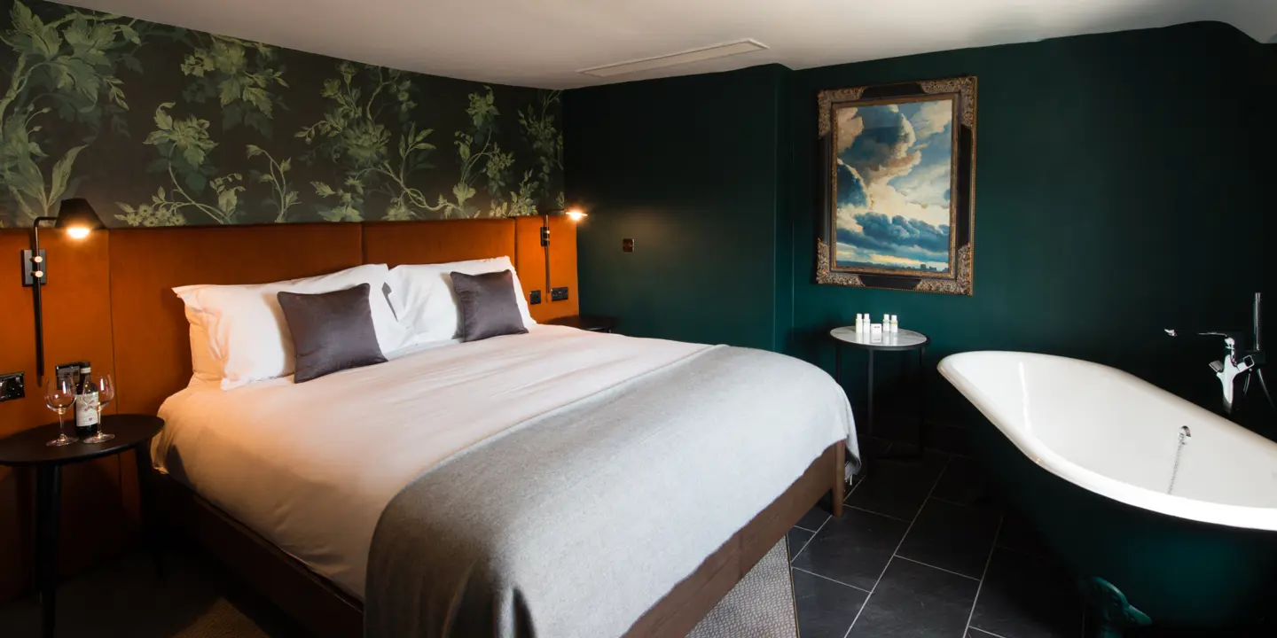 Perrier Jouet and Taittinger are both large one bedroom suites in the captivating original Townhouse building with private access via a stairway, the suite opens into an entrance lobby with views of the charming Rother Street and the bustling market square in the town centre, the dining and sitting area contain intricate antique furniture with an elegant dining table seating 4 people. There is a relaxing chaise lounge in the sitting area with large antique dresser and flat screen TV for entertainment. The separate bedroom contains a luxurious king sized bed with roll top bath for a comfortable soak, and another flat screen TV. The bathroom has a separate dressing area and en-suite walk in drench rainfall shower you will not want to miss. As these suites are at the top of the original building there are lower ceilings, with delightful features from the original build.