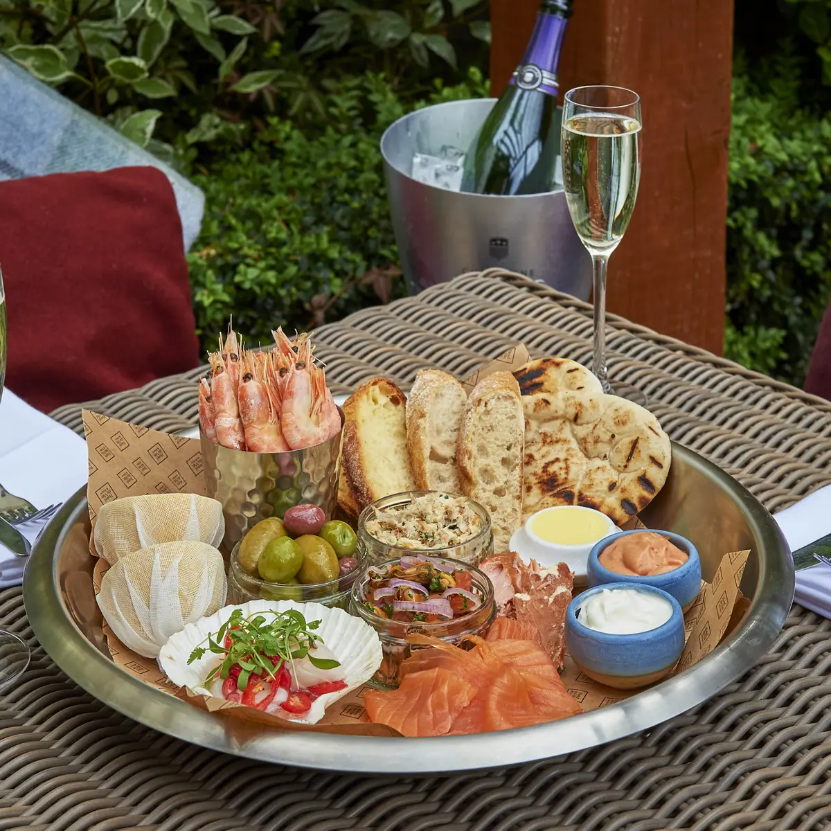 Enjoy a luxurious Fruits de Mer sharing platter paired with a bottle of Chateau Léoube. £39.95 per person.